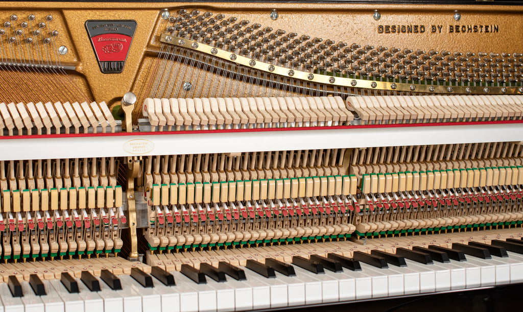 Das Klavier wurde in unserer Werkstatt gründlich gereinigt und technisch überprüft, die Mechanik wurde nachreguliert, die Pedalanlage und Dämpfung nachjustiert und das Klavier gestimmt und intoniert.